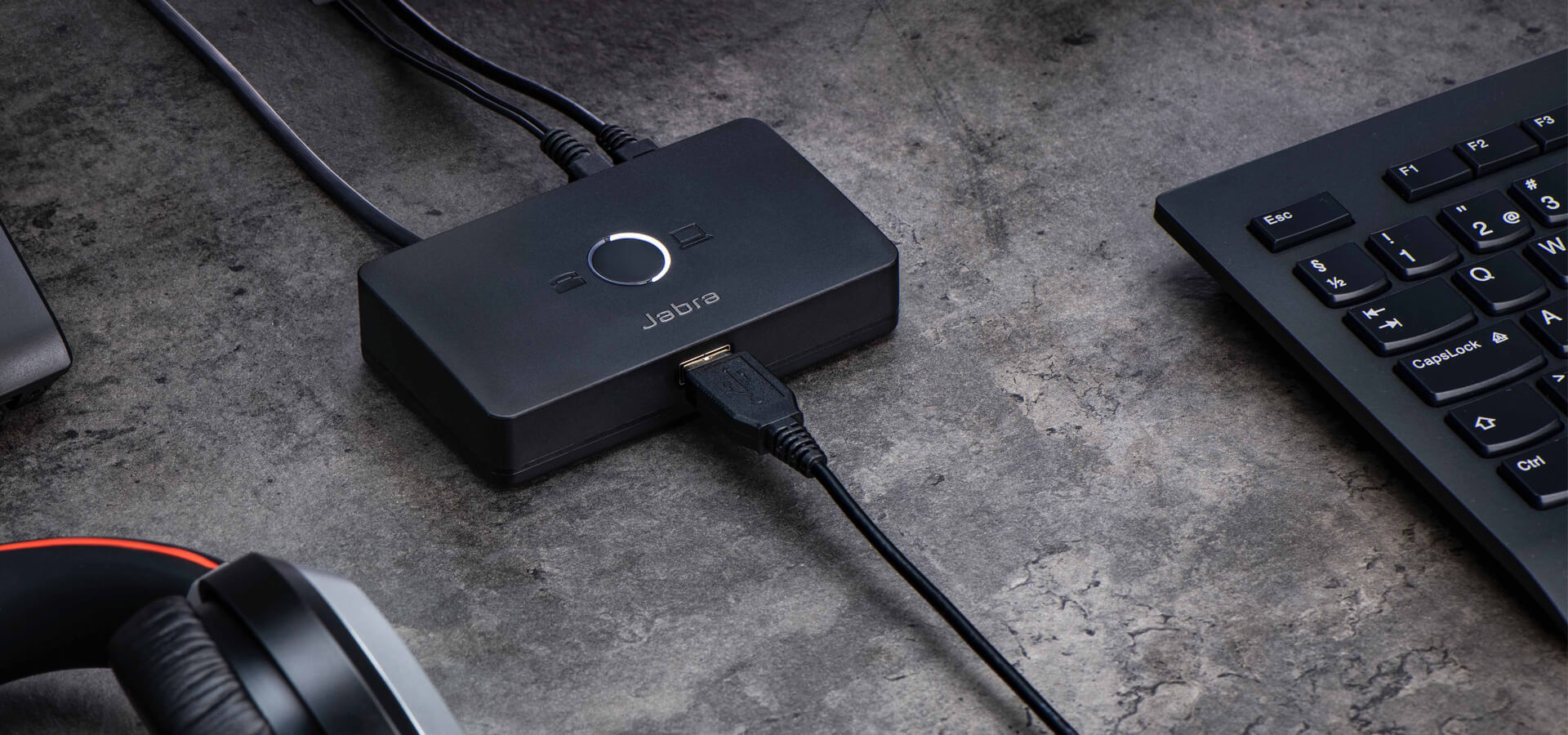 Jabra Link 950 USB-A - адаптер с разъемом USB-A, предназначенный для одновременного подключения профессиональных проводных и беспроводных USB-гарнитур Jabra к настольным телефонным аппаратам, софтфонам и смартфонам, а также бесшовного переключения между ними. Оснащен клавишей переключения между ПК и телефоном. Питание от USB порта, при работе с Jabra Evolve 40, Jabra Evolve 80 и GN 1000 и устройствами Jabra при использовании адаптера Bluetooth Jabra Link 370 потребуется блок питания переменного тока (преобретается отдельно).