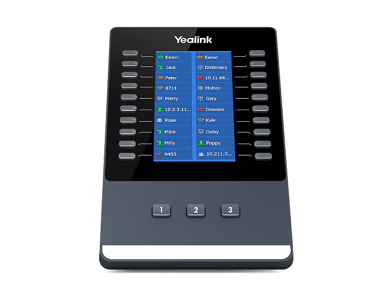 Yealink EXP43 - модуль расширения BLF-кнопок с цветным 4.3" LCD-дисплеем с разрешением 272 х 480. Оснащен 20 программируемыми кнопками и 3 кнопками для переключения страниц экрана, которые позволяют внести до 60 дополнительных значений. Два USB-порта служат для подключения SIP-телефона и дополнительного модуля EXP43 (до 3 штук в цепи). Свободный USB-порт последнего модуля поддерживает подключение USB-гарнитуры или USB-носителя для записи разговоров или сохранения скриншотов. Предназначен для работы с телефонами Yealink SIP-T43U, SIP-T46U и SIP-T48U.