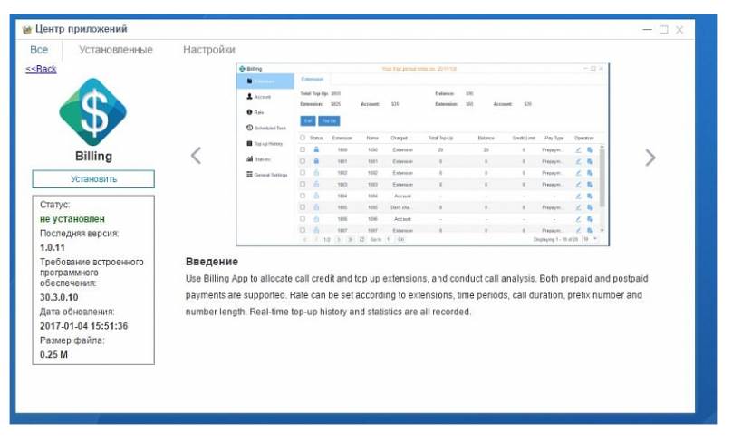 Приложение устанавливается в App-центре Yeastar в интерфейсе самой телефонной станции. Доступны 30-дневный пробный период и возможность покупки бессрочной лицензии.
