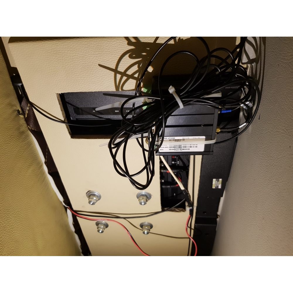 Решение: мы использовали 2-симочный роутер Teltonika RUT955. Он обеспечил автоматическое переключение между операторами связи при значительном ухудшении скорости передачи данных на одной из SIM-карт, а встроенный модуль GPS в комплексе с системой онлайн-мониторинга Teltonika RMS - слежение за микроавтобусом в режиме реального времени из диспетчерского пункта заказчика. Скорость доступа в Интернет составила порядка 100 Мбит/с при перемещении по Москве, и 20-40 Мбит/с - в Московской области. Монтаж был осуществлен максимально скрыто, с минимальным вмешательством в интерьер микроавтобуса.