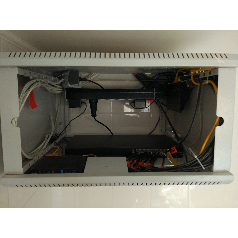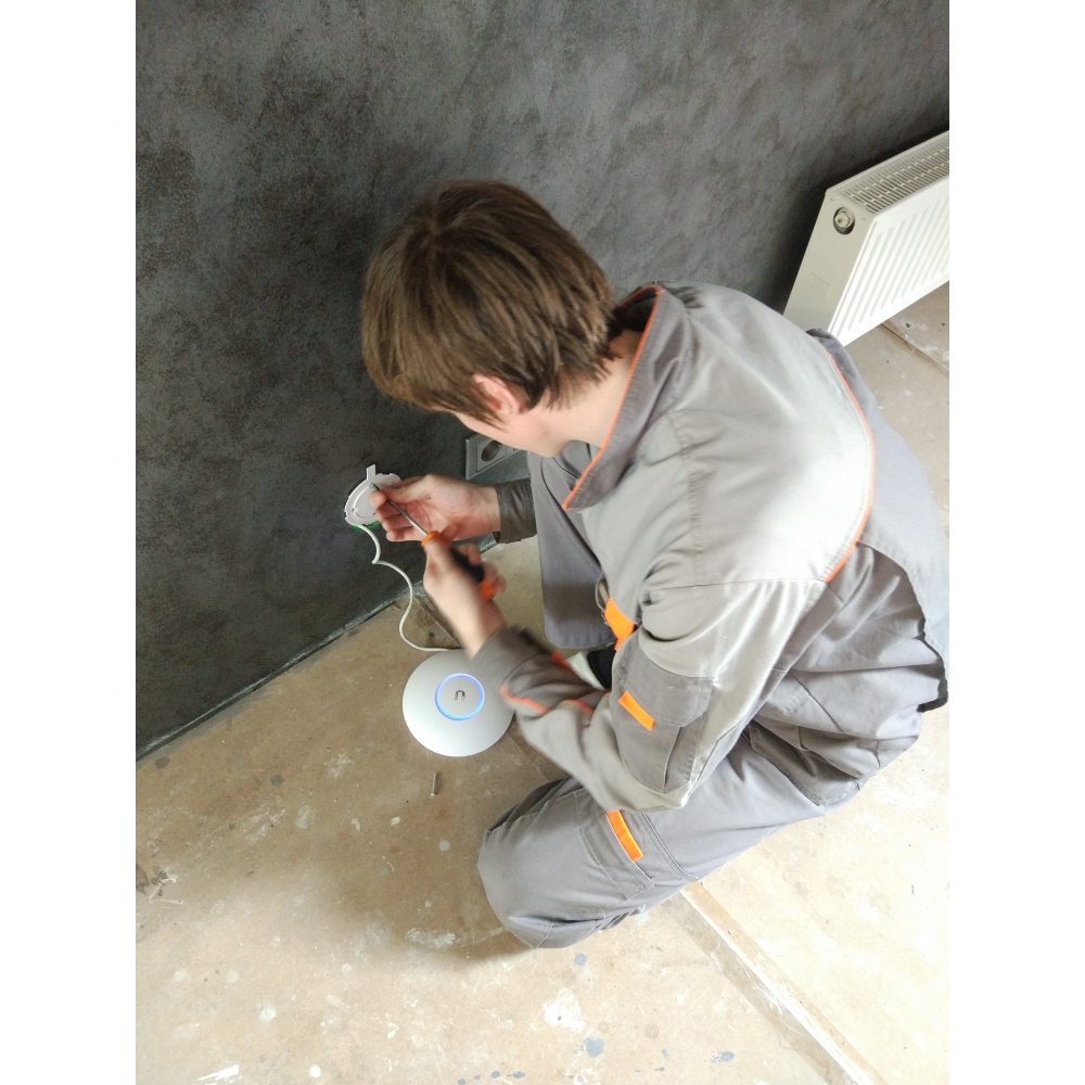 Решение: для сети WiFi мы применили оборудование Ubiquiti серии UniFi: точки доступа UniFi AC Pro AP, контроллер Cloud Key и коммутатор TOUGHSwitch, также обеспечивший питание сетевых устройств. Оптический канал связи Интернет принял роутер Eltex. Коммутационное оборудование было аккуратно собрано в шкафу ЦМО в техническом помещении. Точки доступа были смонтированы открыто, но максимально эстетично.